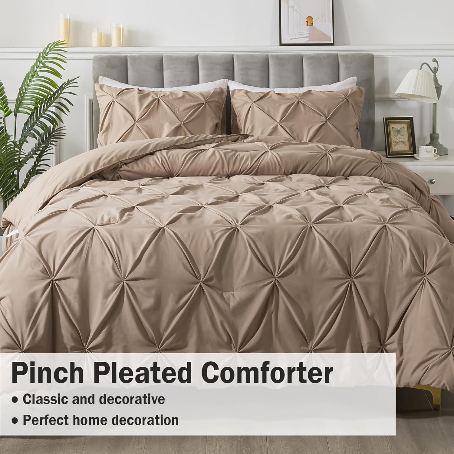 - SOFT AND COZY FABRIC: This pinch pleat comforter set is made from high-quality microfiber, which is extremely soft and cozy. The comforter is filled with down alternative microfiber, which is lightweight to reach a perfect balance between warmth and comfort, brings you a good and sound sleep.
