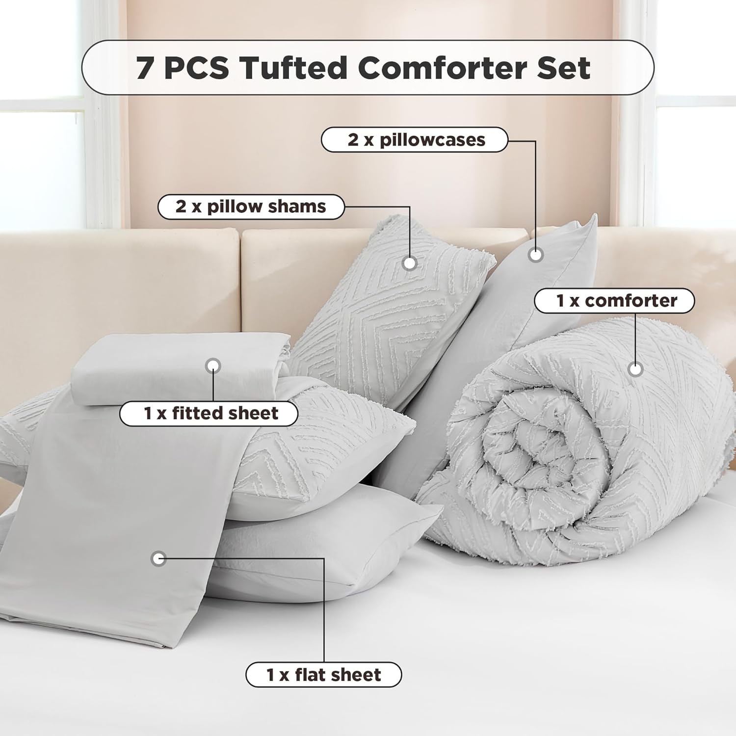 All-in-one elegance for your bedroom: this 7-piece set includes a plush comforter, matching shams, and coordinating accents. It takes the guesswork out of styling, delivering cohesive luxury in every piece