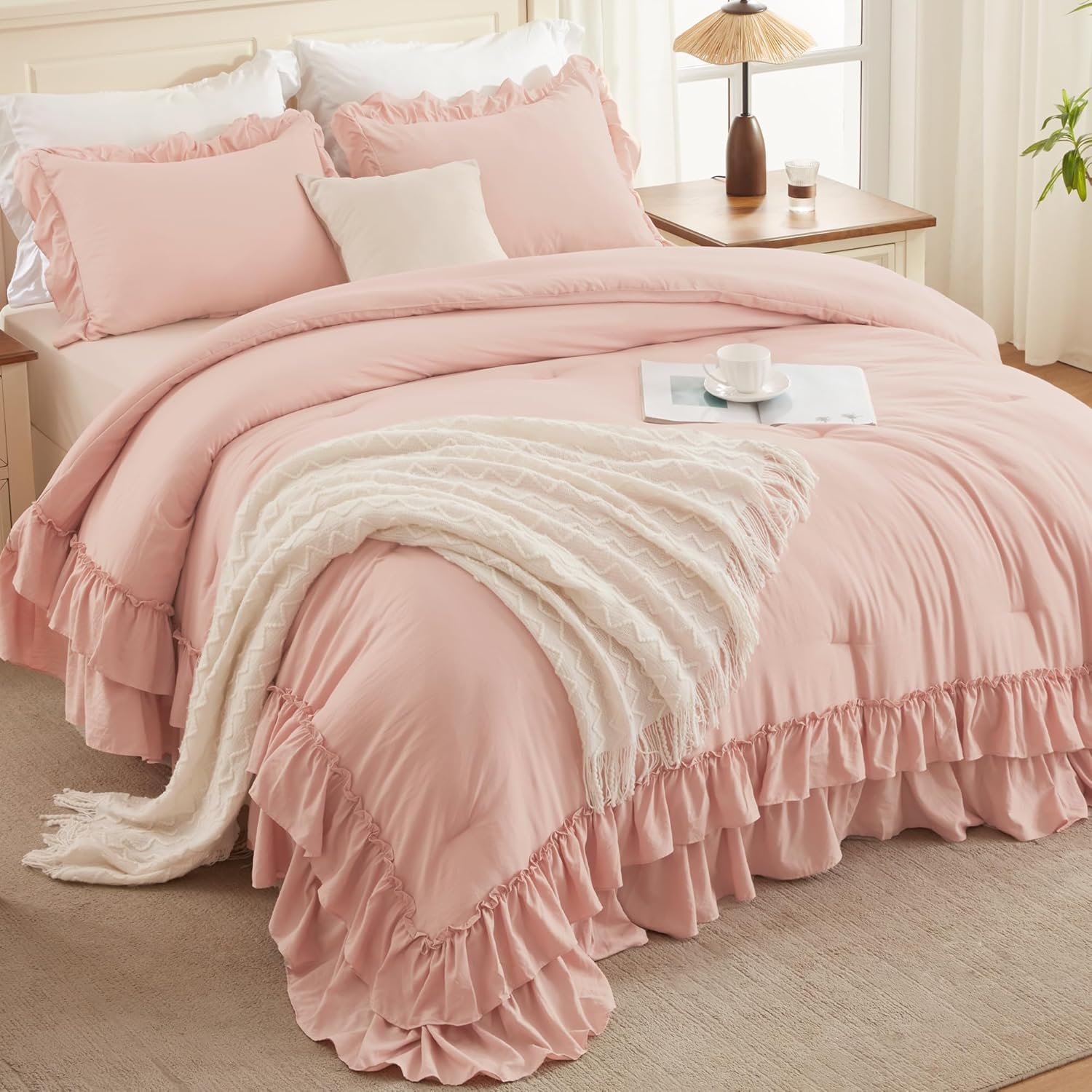 • Easy Care: Our ruffle comforter set is packed in a vacuum bag, when you get our comforter set, simply shake and pat it lightly until it becomes fluffy. Please machine wash separately in cold water on a gentle cycle, then sun-dry or tumble dry on low as necessary.