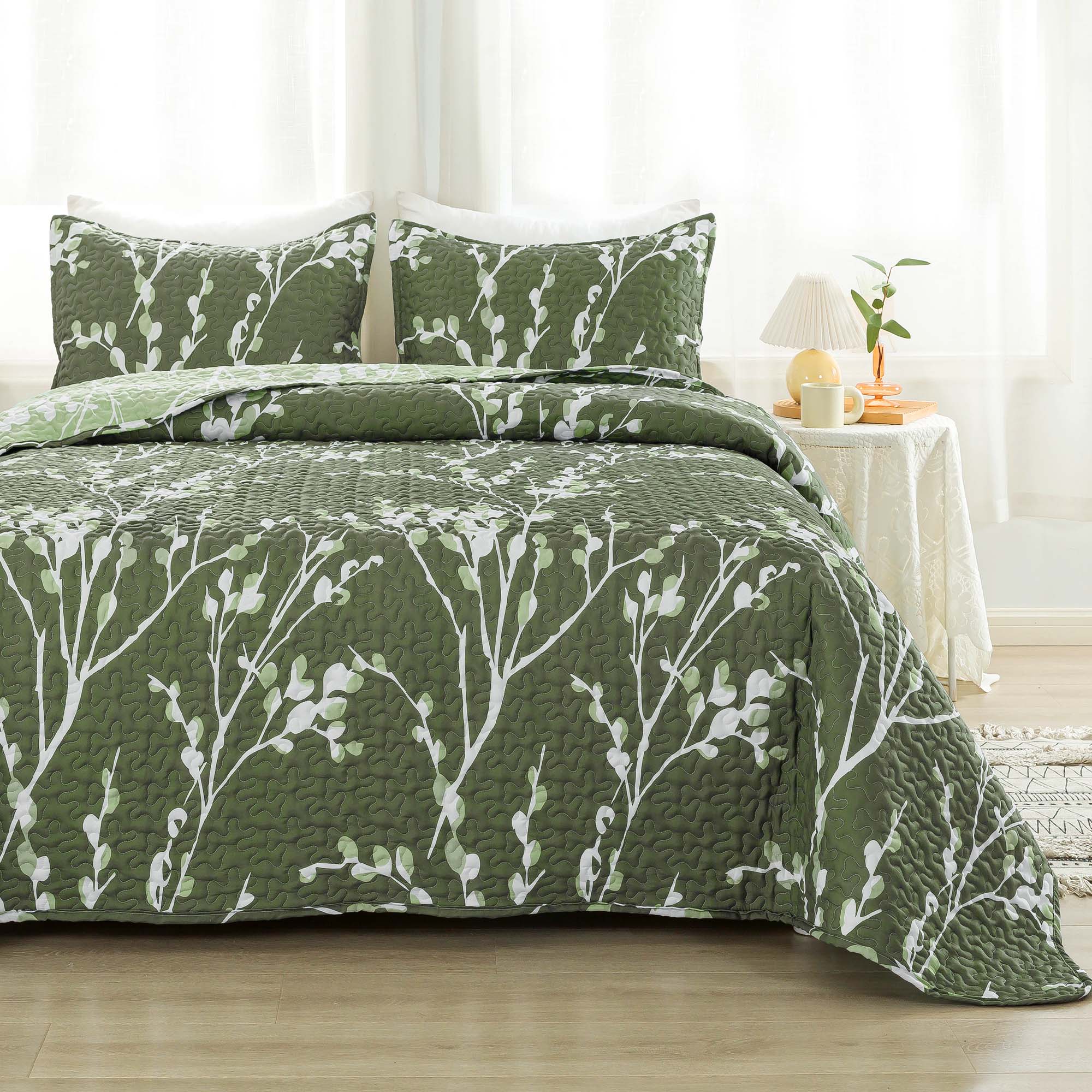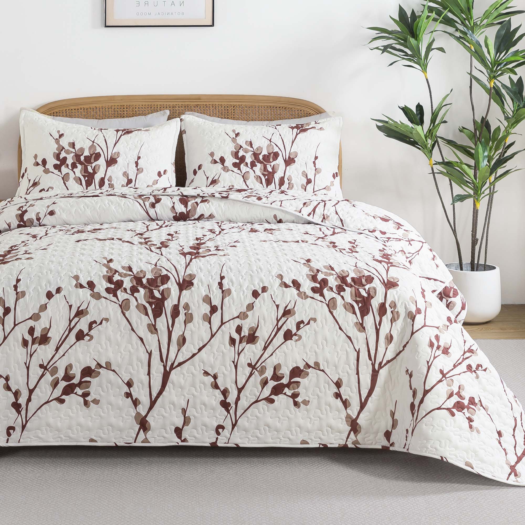 - Stylish Reversible Design: This lightweight quilt is printed with beautiful floral and leaves pattern in farmhouse sytle. The coordinating color and delicate botanical design make the bedspread reversible. You can change the side as often as you like.
